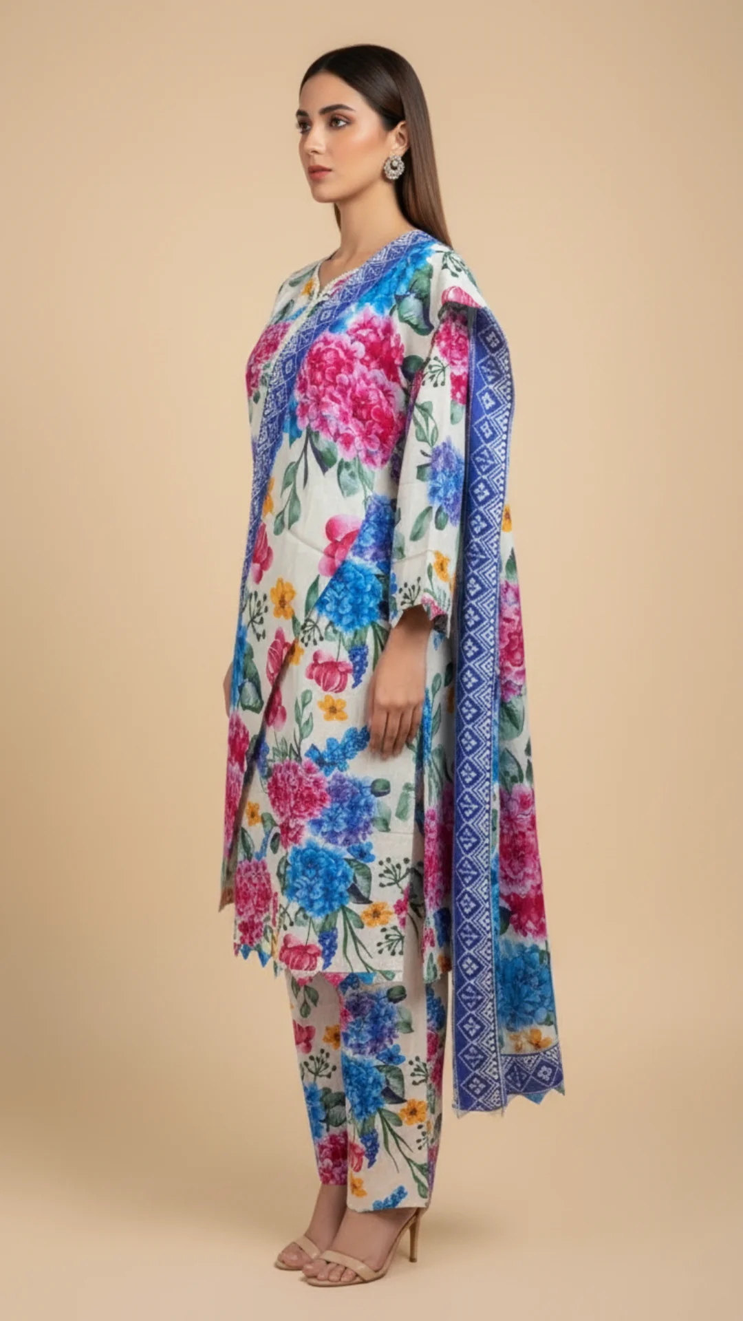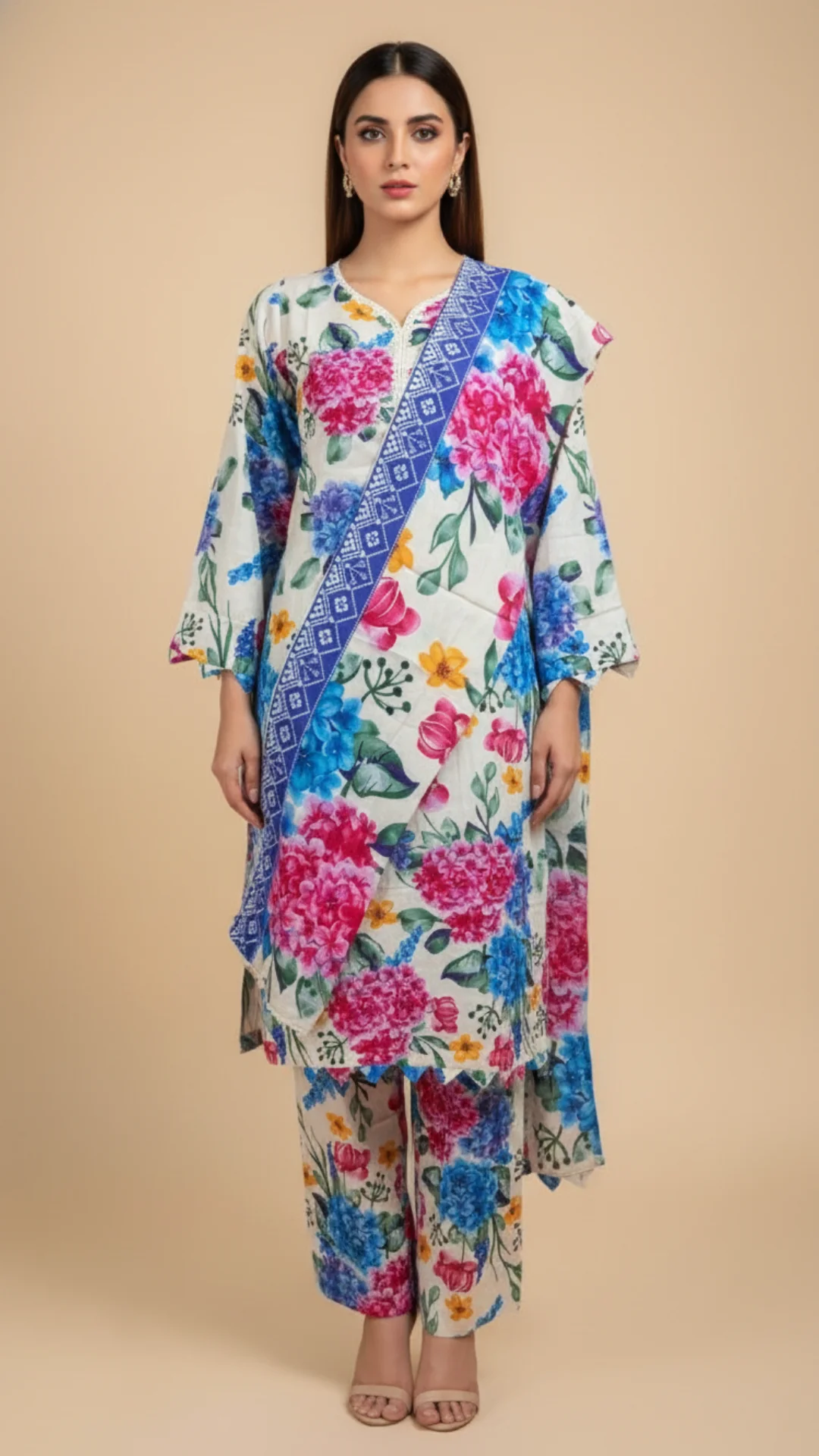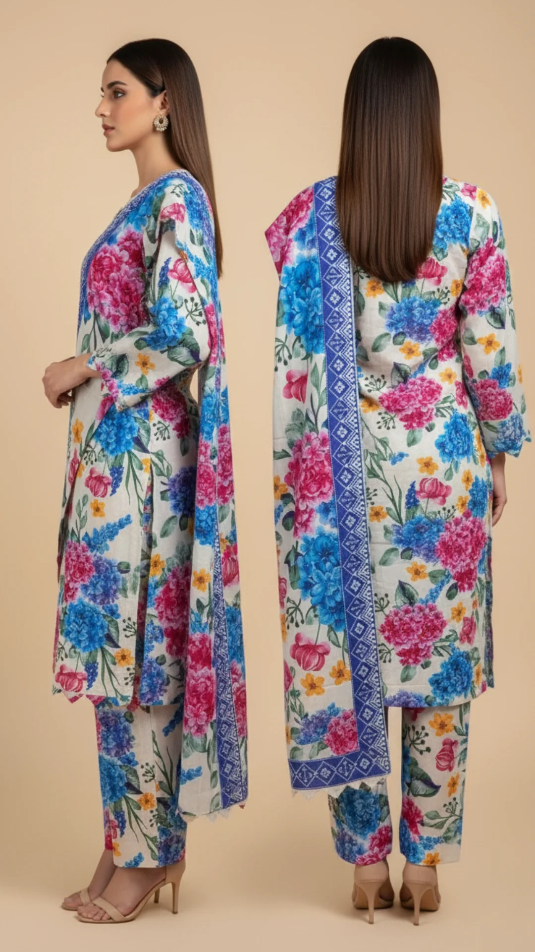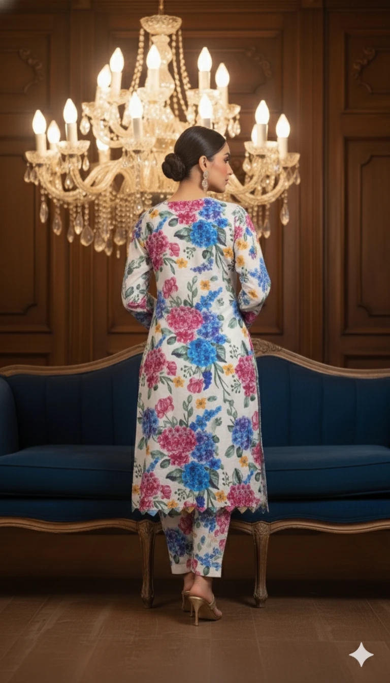 Step into the season with this beautifully designed linen outfit that perfectly combines comfort and sophistication. The digital prints enhance its contemporary appeal, while the soft linen fabric ensures warmth and durability. Ideal for daytime elegance or evening gatherings, this outfit is a timeless addition to your winter wardrobe.
