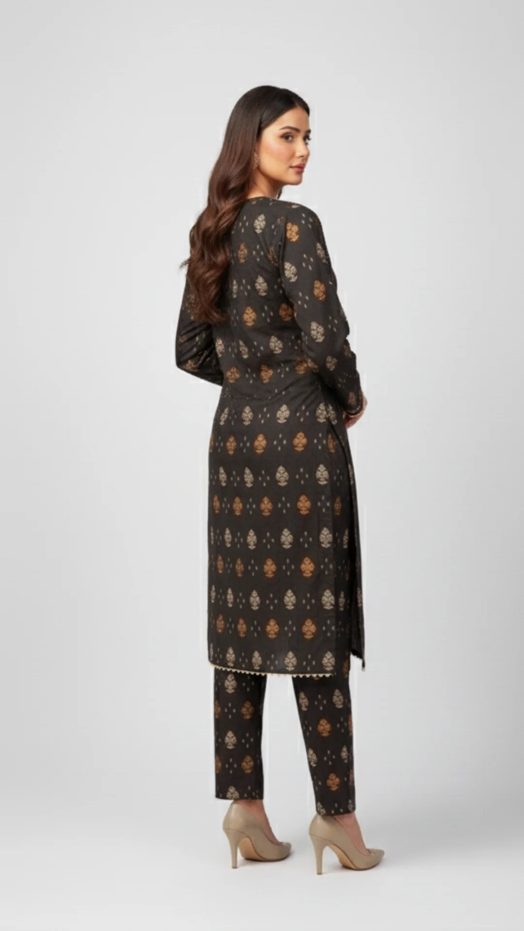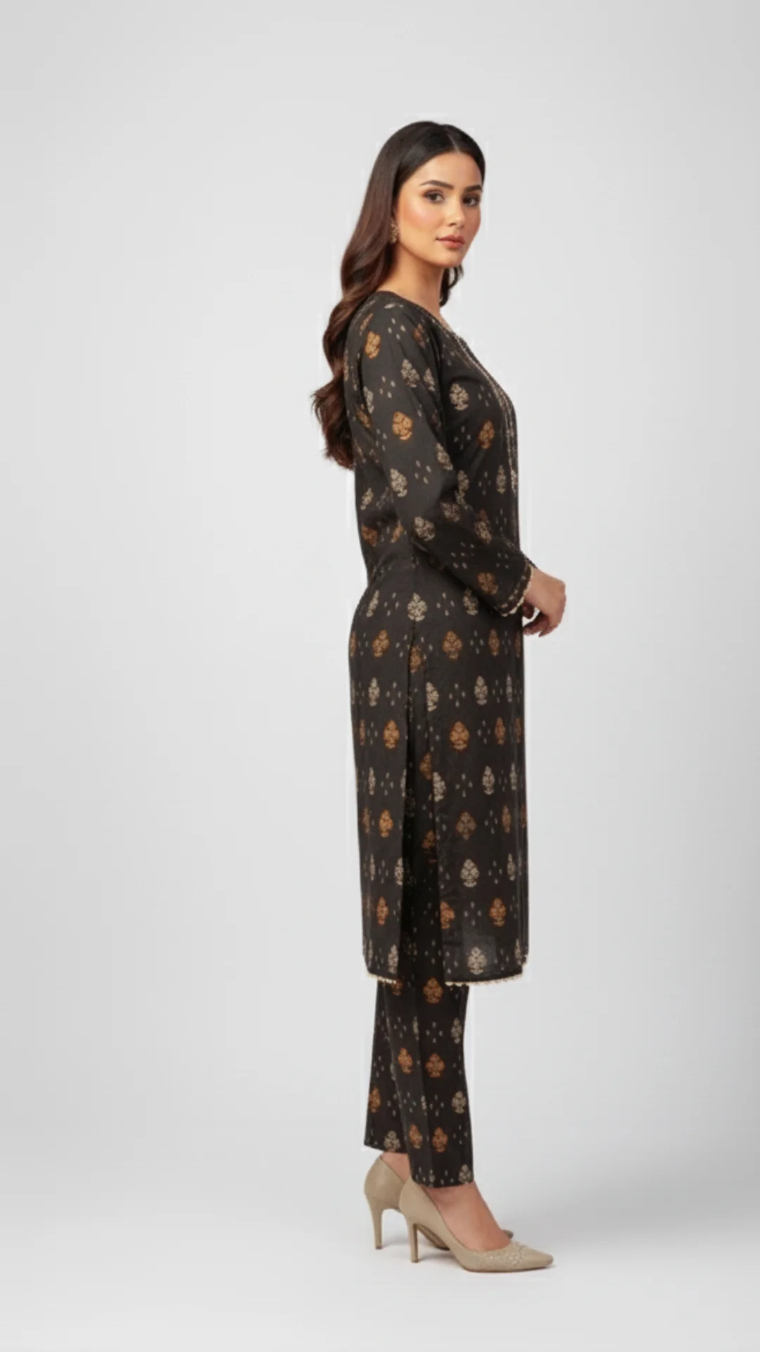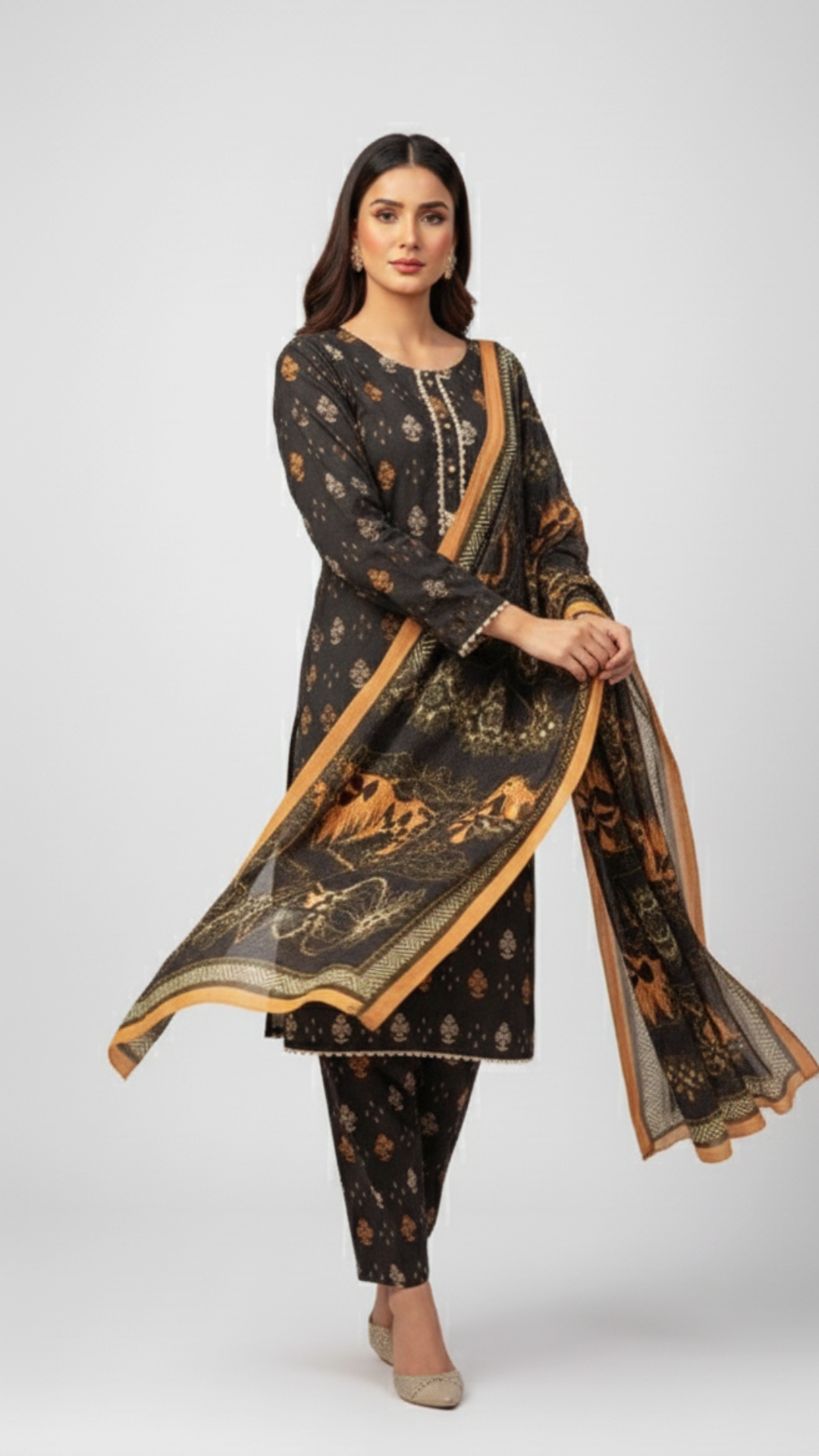 Step into the winter season with this graceful Karandi outfit, designed to offer both warmth and sophistication. The digitally printed shirt and dupatta create a charming combination, while the premium fabric ensures lasting comfort. Perfect for chilly days, this outfit adds a touch of elegance and class to your winter wardrobe.