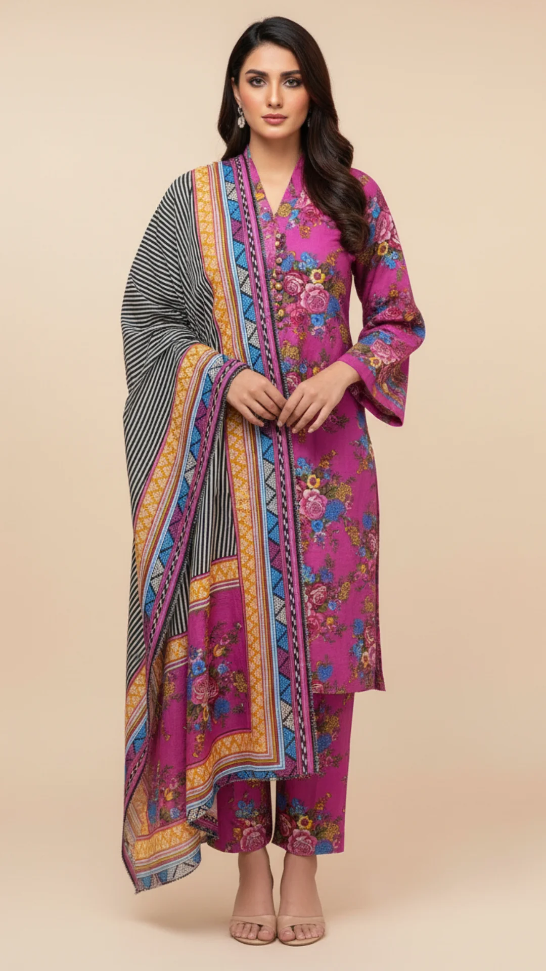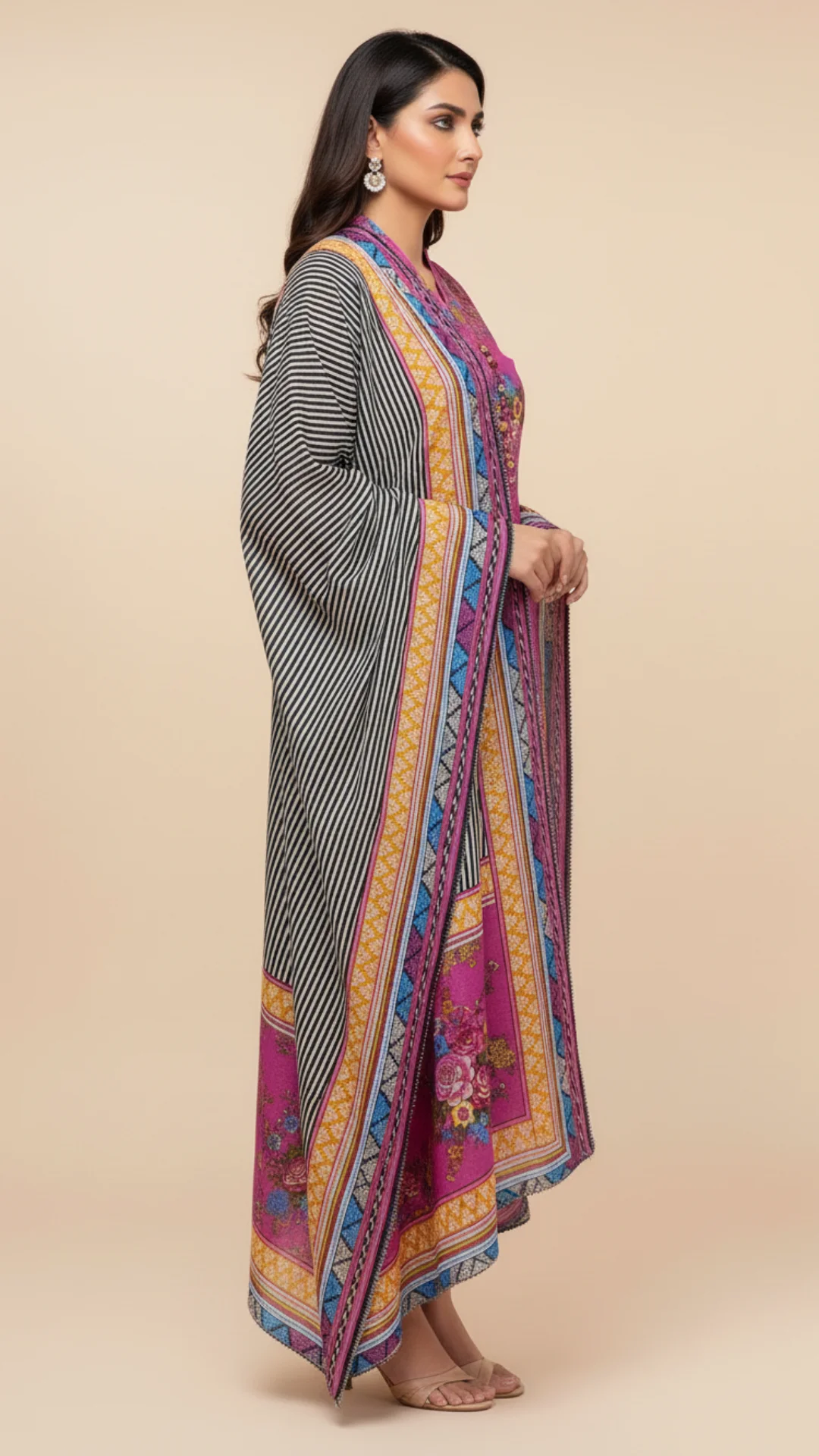 Elevate your winter style with this premium Khaddar outfit designed for both comfort and class. The digital prints add a touch of charm and sophistication, while the soft fabric ensures warmth during chilly days. Perfect for everyday outings or festive gatherings, this ensemble combines timeless beauty with modern flair.